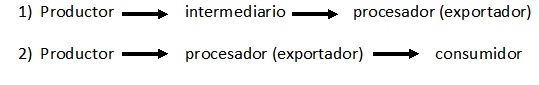 Dada la racionalidad de los productores, la comercialización de su producción llega hasta los intermediarios o acopiadores que exportan y entre éstos, se han identificado seis grandes grupos económicos: Uniones de cooperativas, empresas cooperativas, empresas de comercialización privada, empresas de procesamiento, agentes exportadores e instituciones no gubernamentales (López Moisés, 2000. Citado por Avendaño, 2006: P.25).