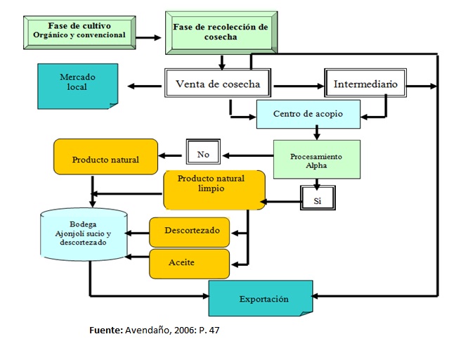 El cultivo del ajonjolí involucra diferentes agentes en cada segmento de la cadena: producción, procesamiento, comercialización y transporte hasta el consumidor. (Avendaño, 2006: P. 46)