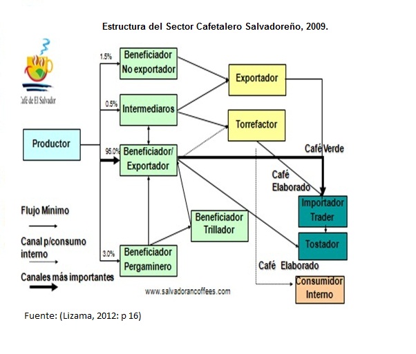 Instituciones interventoras en la cadena de café: Consejo Salvadoreño del Café (1989), es la instancia máxima para formular y dirigir la política nacional en materia cafetalera. Fundación Salvadoreña para investigaciones del CAFÉ (PROCAFE, 1989), dinamiza la caficultura mediante la generación y transferencia de tecnología orientada a la reconversión productiva. Banco Multisectorial de Inversiones (BMI), es la principal herramienta del gobierno para fomentar el desarrollo económico de los diferentes sectores productivos. Ministerio de Obras Públicas (MOP), es el proveedor de infraestructura vial. Instituto Salvadoreño de Transformación Agraria (ISTA, 1975), ejecutar con otras instituciones la política de transformación agraria. Policía Nacional Civil (PNC), garantizar la seguridad ciudadana. (Flores, 2006:46)