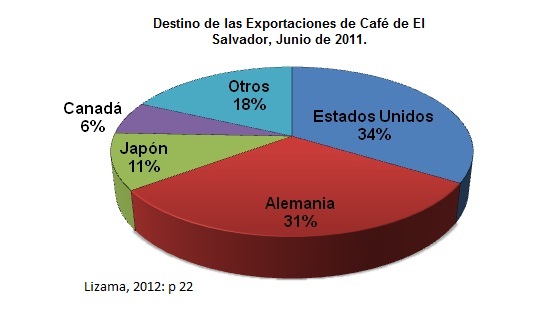 En la cosecha 2004/05 el 78% del total de exportaciones de café tuvo el siguiente destino: Estados Unidos de América 33%, seguido de Alemania con el 25%, después Bélgica con 12% y Francia con el 8%. (Flores, 2006:4)